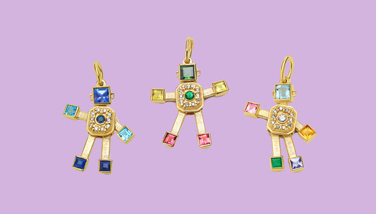 Your favourite Van Robots just had babies. Disco and Denim Hearts Mini Pendants join Neon
