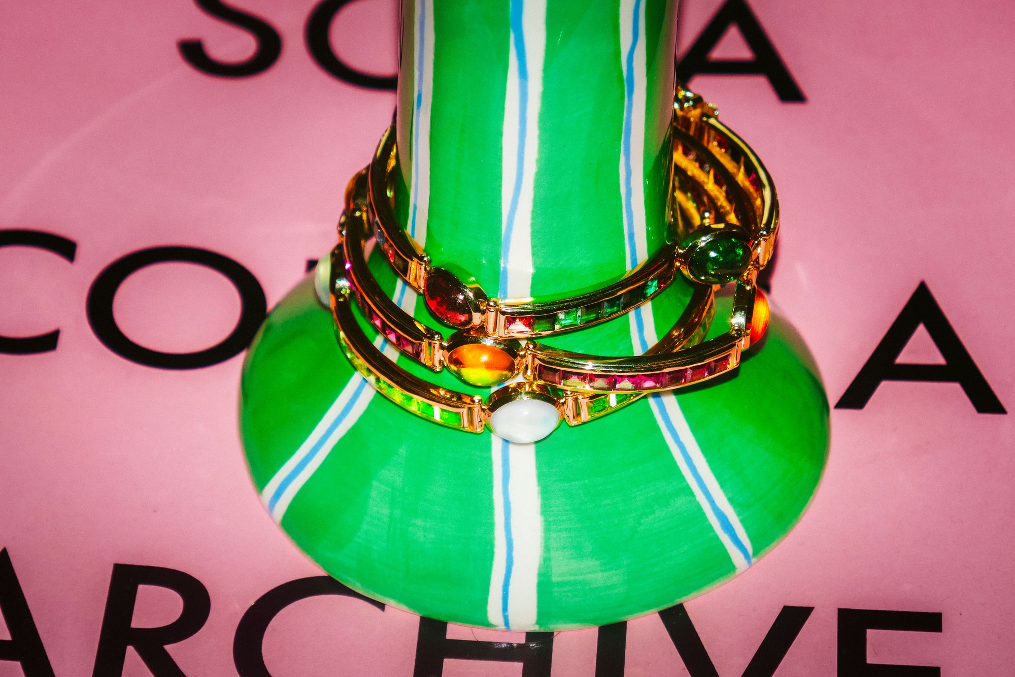 Iridescent Australian Opals are illuminated with Diamonds surrounded by neon and pastel enamels, creating psychedelic fine jewellery pieces.