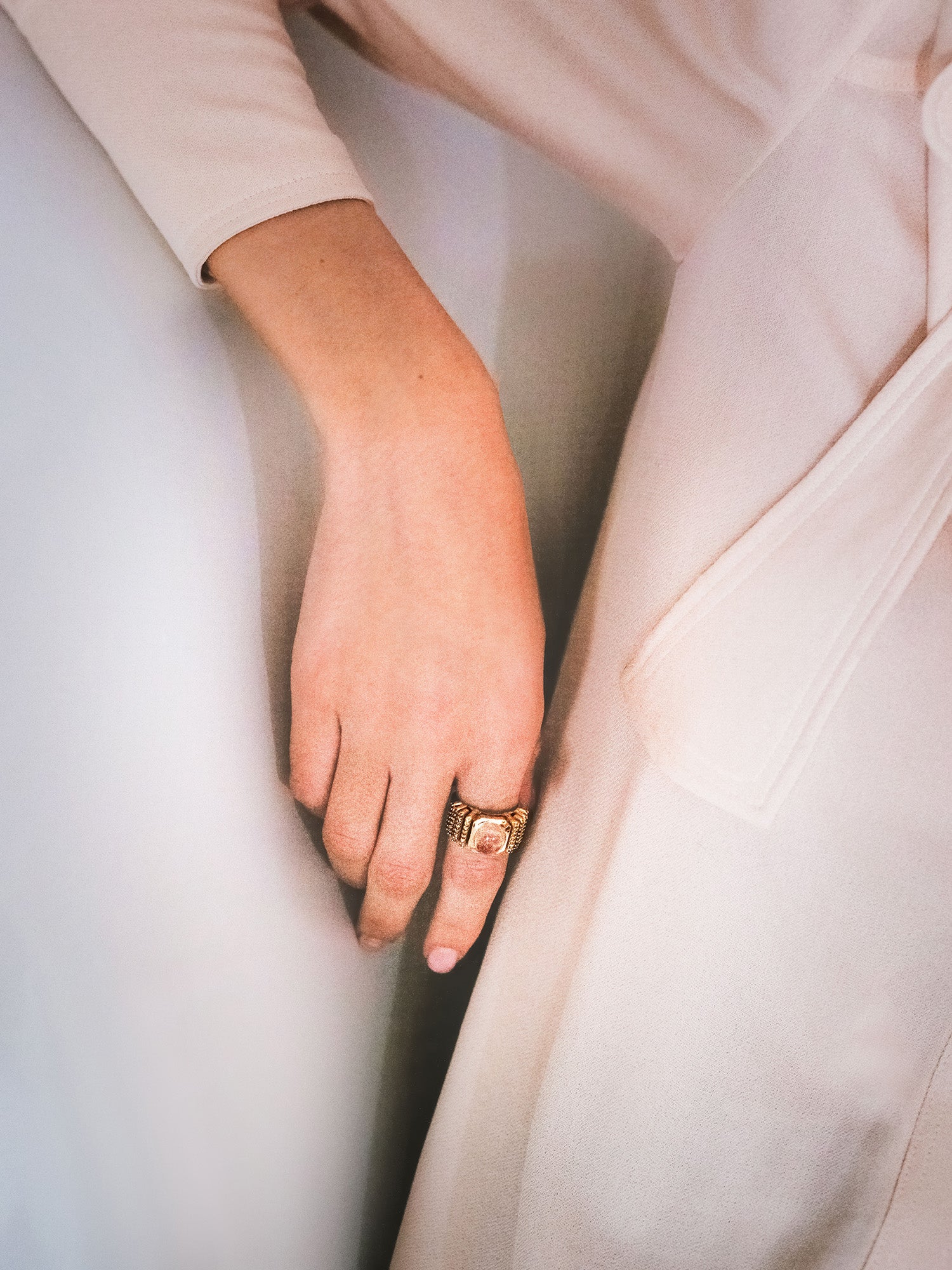 Sogno Dynasty Van Signet Champagne Diamond Pave Morganite