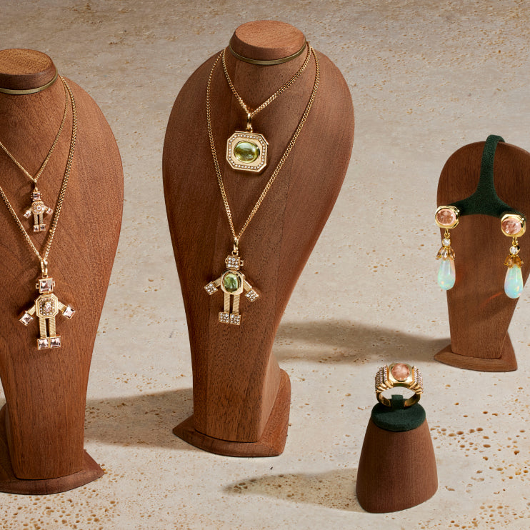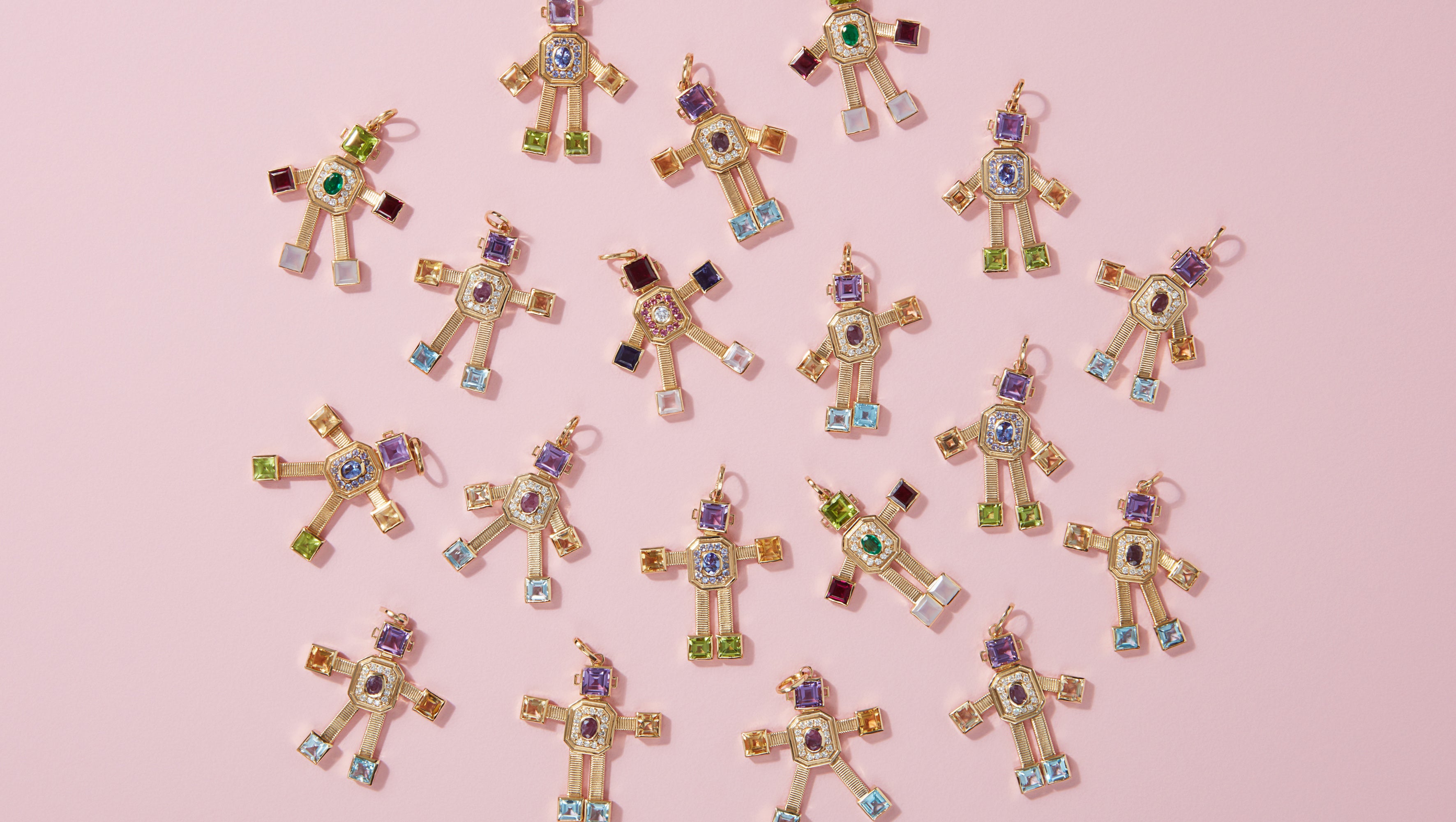 Joyful, playful bijoux bots featuring Diamonds and vivid precious stones and 18kt Gold, handcrafted in Italy.