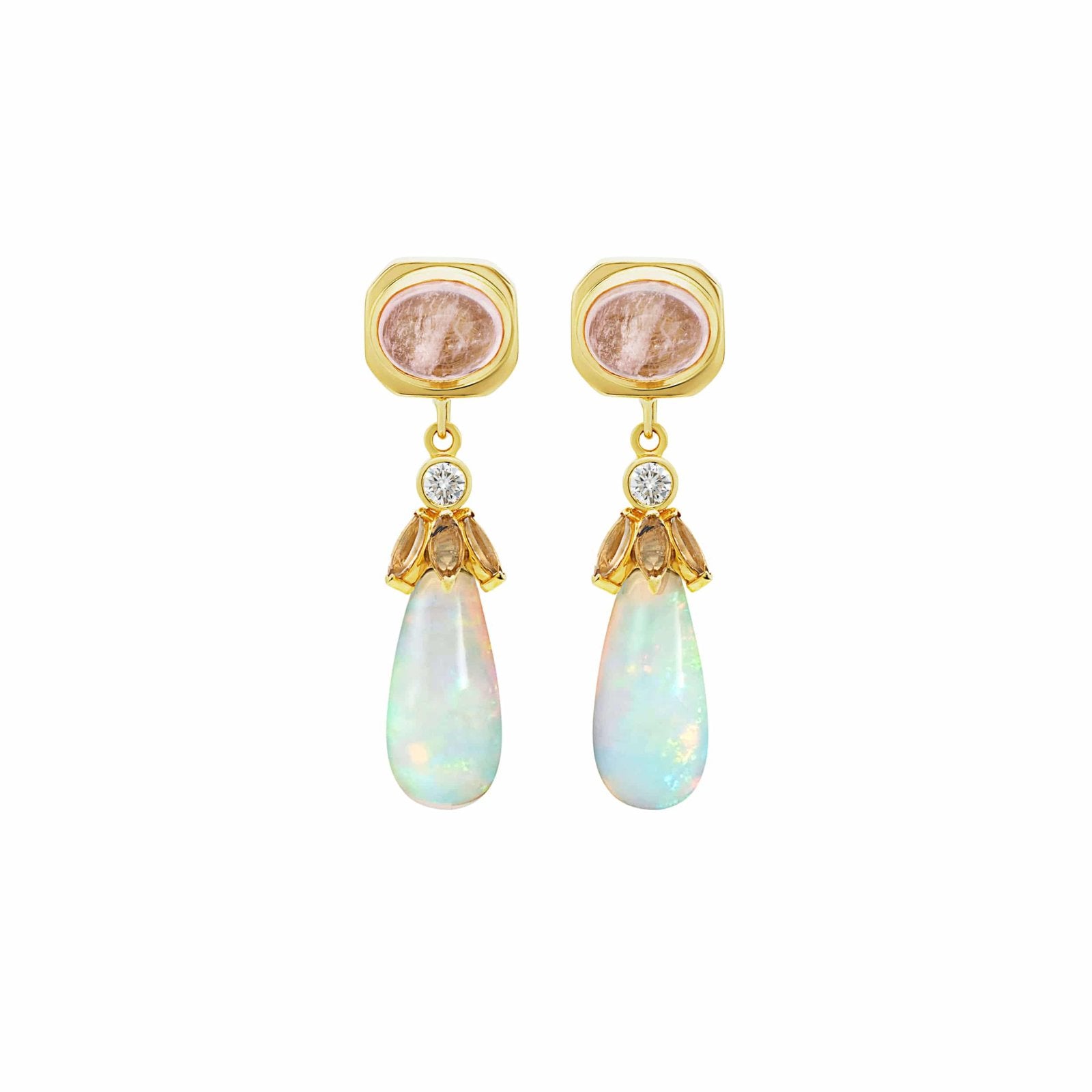 Sogno Van Studs Morganite with Sogno Van Drops Detachable Opal Diamond Morganite