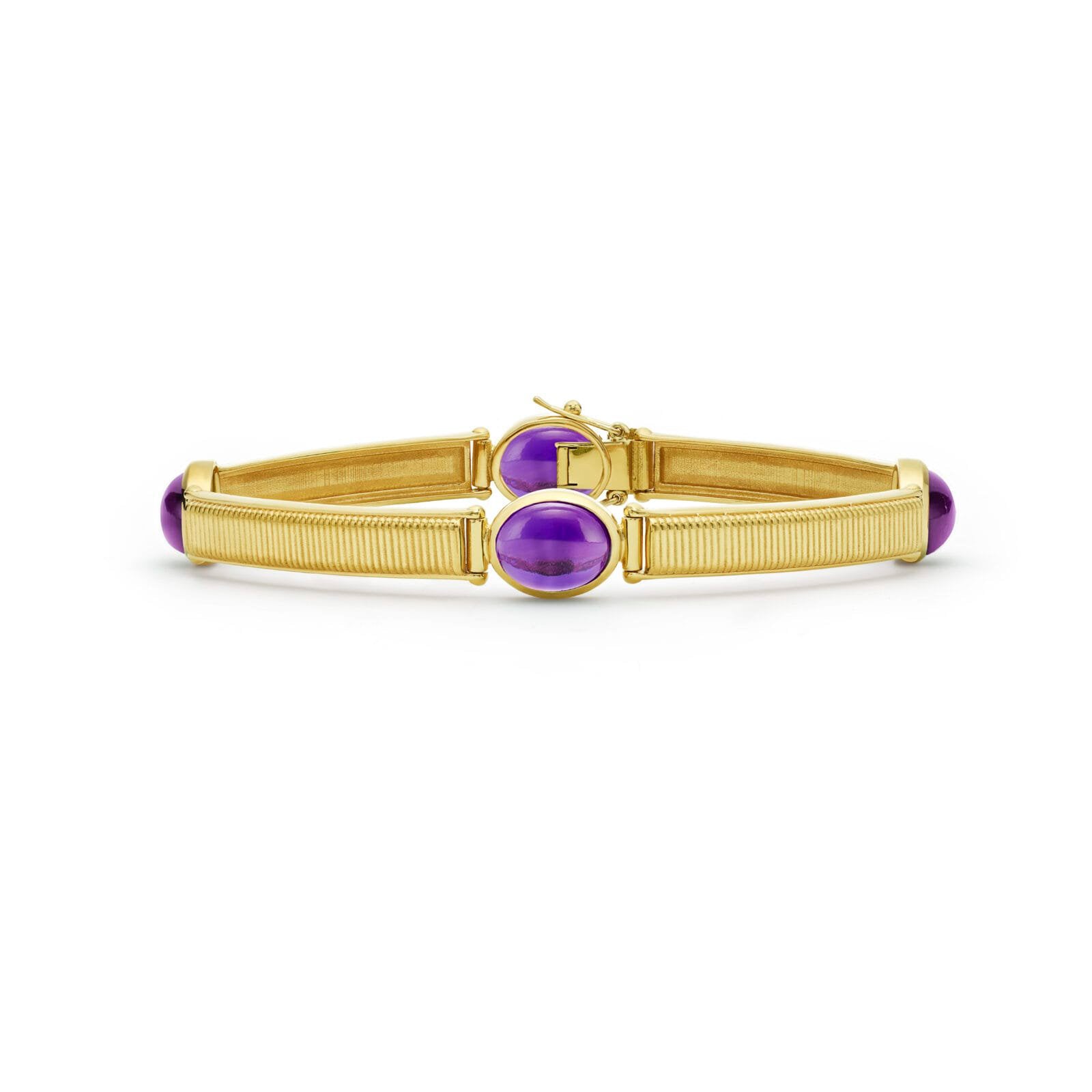 Fine jewellery bracelet handmade in Italy with 18kt Gold and cabochon Amethyst Power Stones believed to have healing and protective energies. See Stone Properties for more details. Available in two lengths.