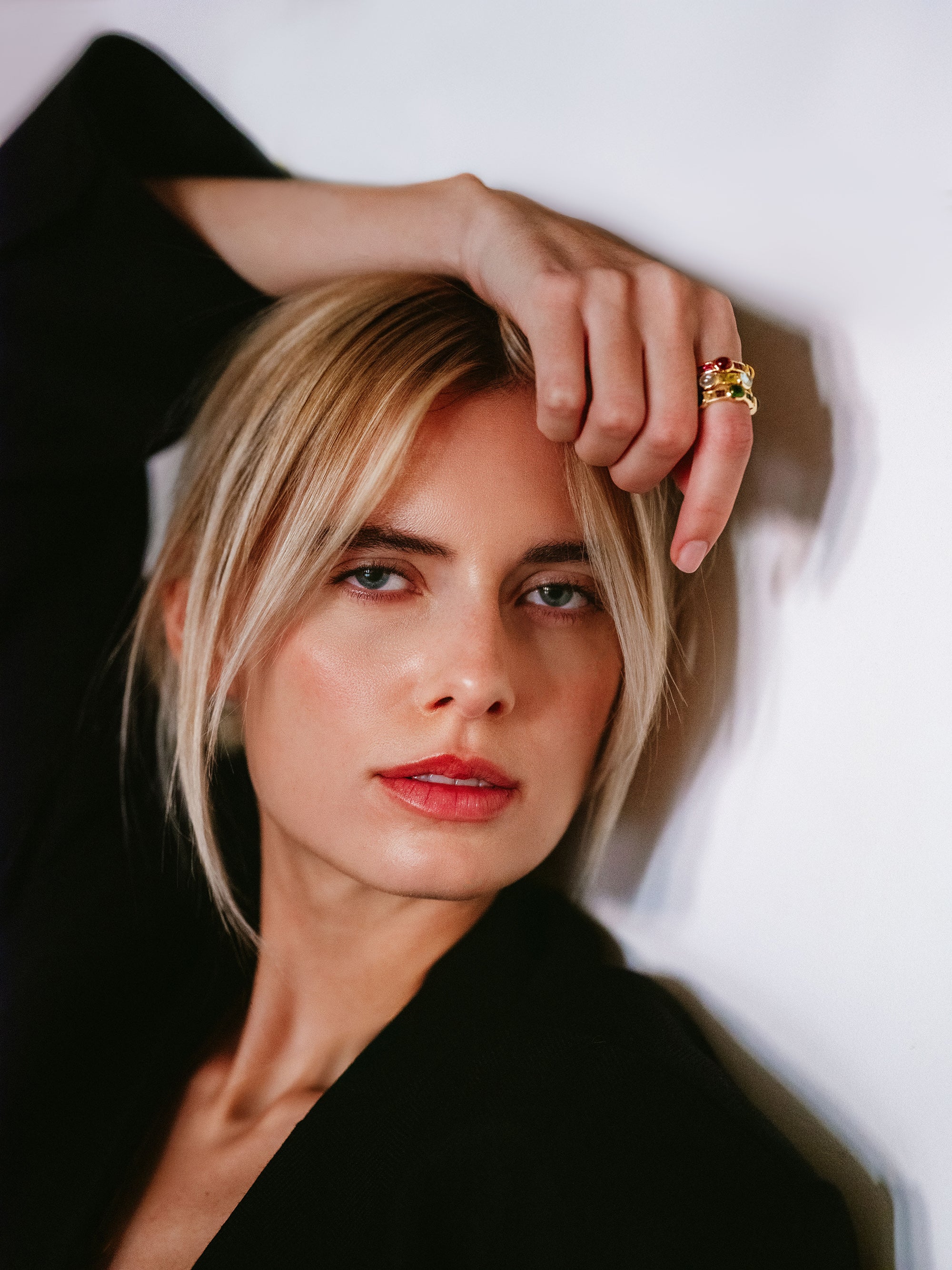 Sydney Van Stack Ring Diamond Emerald Sapphire