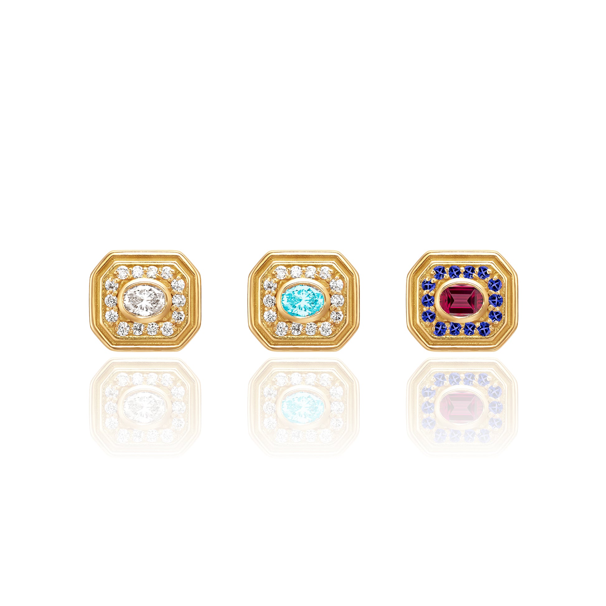 Van Studs Diamond, Aquamarine & Diamond, Ruby & Tanzanite